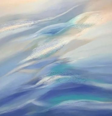 Mixed media and textural work on canvas, created in 2023. This piece is a tribute to all lovers, depicting a romantic moonlit scene that gently illuminates both the sky and the sea.